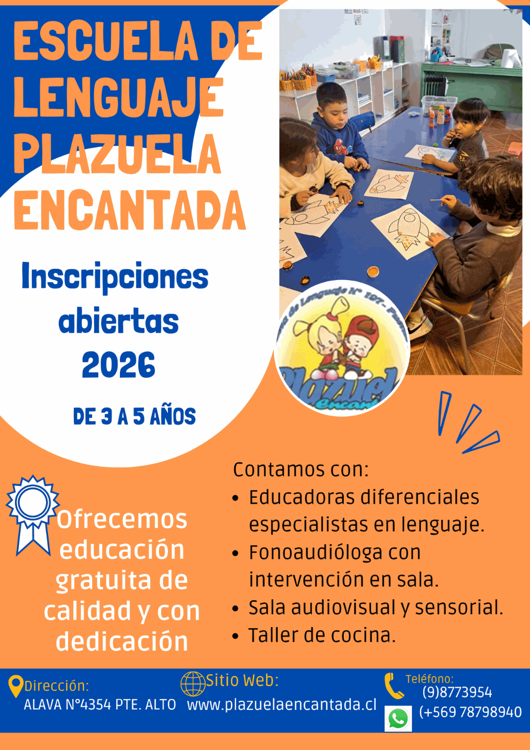 La escuela de Lenguaje "Plazuela Encantada", nace ante la necesidad de entregar una educación de calidad a niños y niñas que presentan trastornos específicos del lenguaje, además de ofrecer una alternativa educativa para ellos.